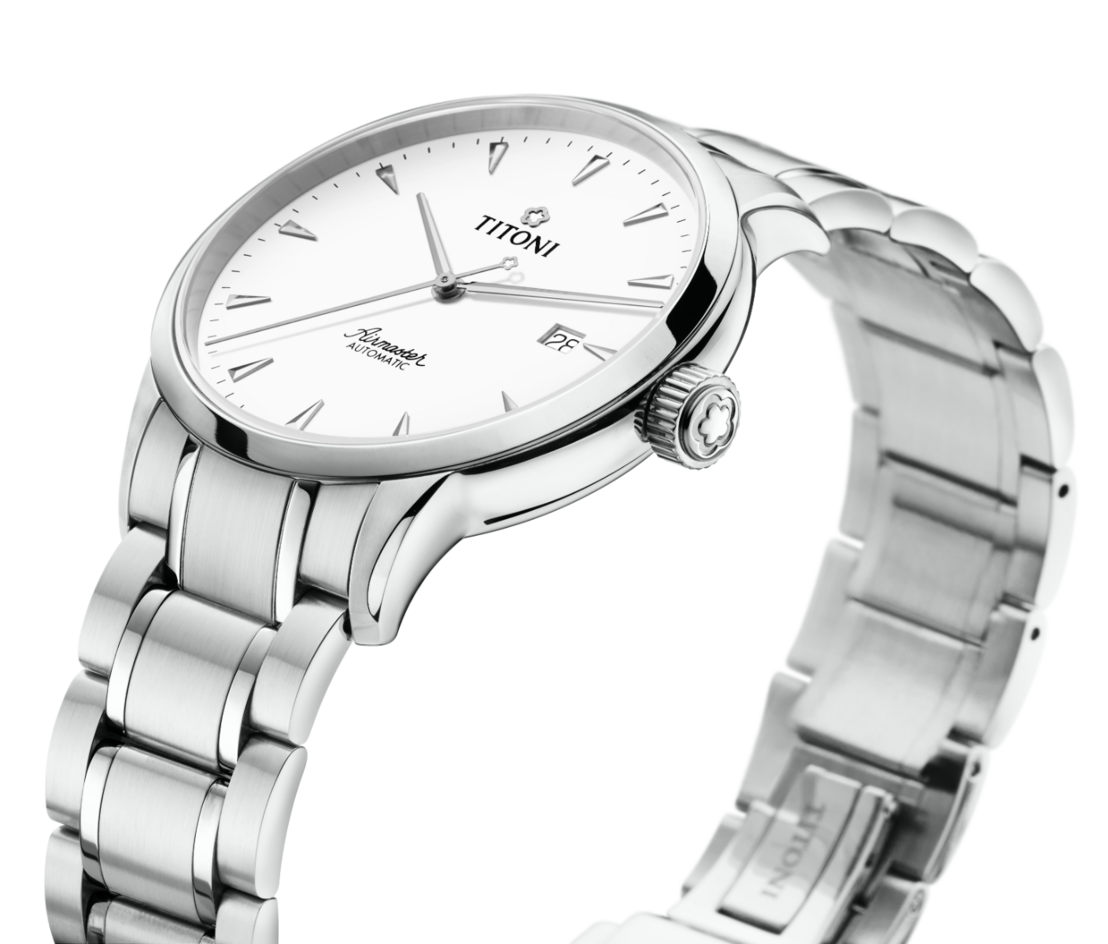 Die Ursprünge der Airmaster reichen zurück bis zur ersten bemannten Mondlandung im Jahr 1969. Dank des grösseren Sichtfensters wirkt dieses neu überarbeitete Modell der legendären Uhrenserie deutlich frischer und klarer. Gleichzeitig hat es sich die kraftvolle Ausstrahlung bewahrt, die die Serie seit Jahrzehnten auszeichnet. Alle Uhren der Airmaster-Kollektion werden ausschliesslich unter Verwendung hochwertiger Teile gefertigt. Ein Grund mehr dafür, dass sich diese TITONI-Serie im Lauf von Generationen Kultstatus erworben hat.